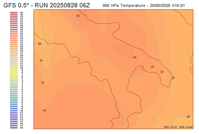 | 23,4� | 22,2� | 21� | 20,4� | 20,2� | 19� |